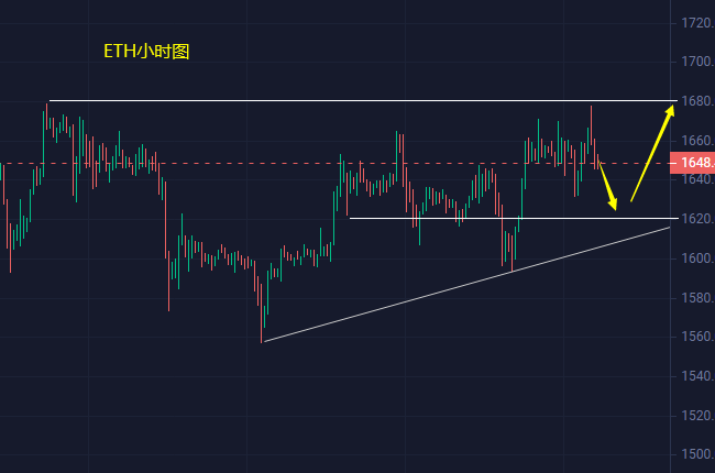 以太坊,显然短线的区间也没有破,所以就让价格在区间内部随意震荡吧,目前主要关注1600-1700,短线顶部阻力比较集中,价格也好几天没有向上测试1700关口,1660-1670成为短线的主要压制;这两天币价一直尝试向上寻求突破,但阻力压制依旧明显,日内继续关注1660-1670阻力位,若能突破的话继续上看1700关口即可,操作上还是以低多为主更为稳妥。