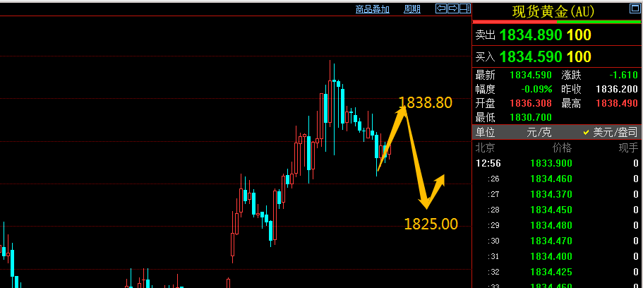 黄金昨天给出的策略是1830区域多,上看1845.00,然后1845.00区域空。