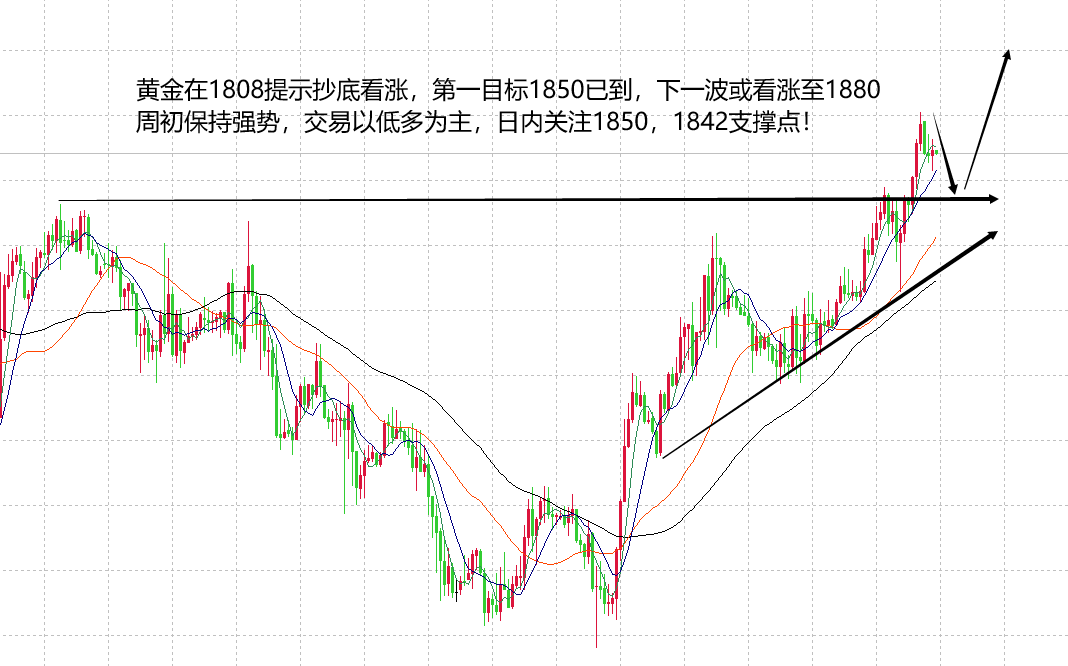 山海杨阳:黄金看涨终到1850高点,本周市场聚焦非农数据!