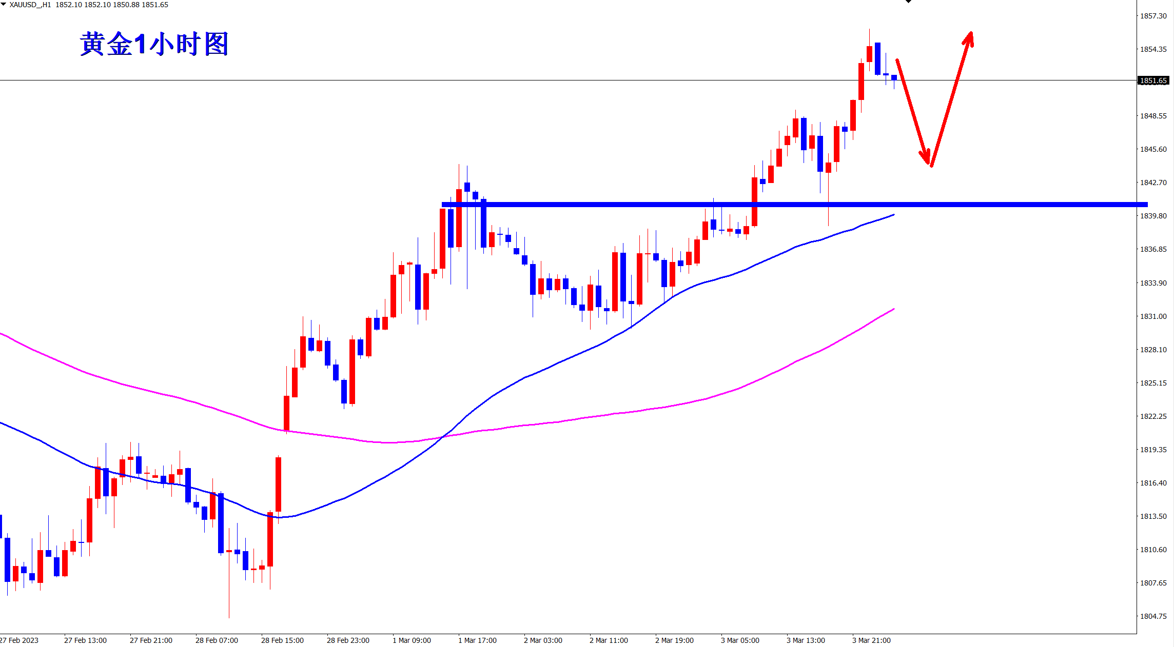 黄金1840多,止损1833,目标1855-1865;