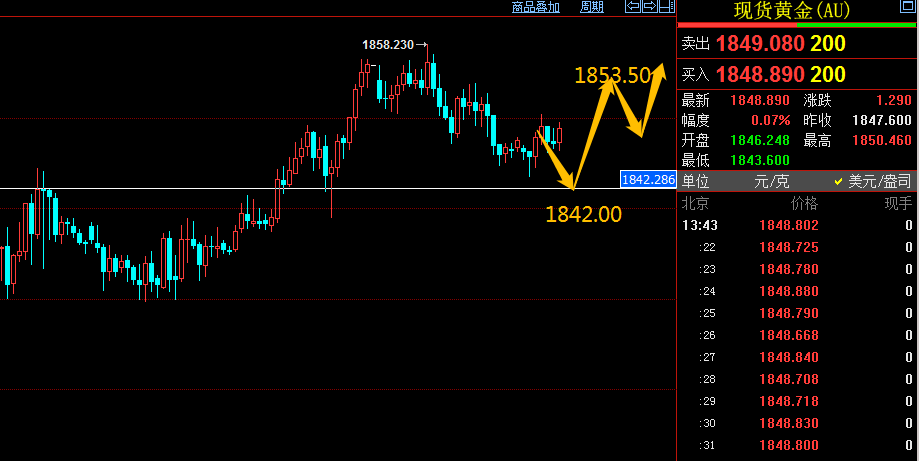 如果黄金1842.00跌破,则黄金会下跌到1835.00区域继续上涨,具体的走势形态根据行情变化,我们在做出实时调整