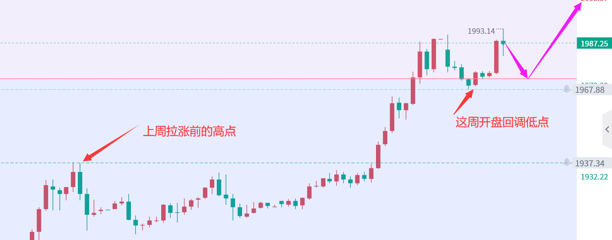 金价开盘走低后再次上行,还刷新上周的高点,目前小幅回落于1987附近震荡。早间给的分析是回落上周五上涨二次发力点1955-1962区间去布局多单,但是回调力量不足,于1967附近再次拉涨。本周的主要支撑点关注上周五之前的高点1937这里,只要保持此位置之上,整体还是偏于多头来看。故欧盘操作建议,等待下探1972附近做多,做多的点位抬升,做空不建议操作,高位被套得不偿失。上周或者之前有空单被套的的最优解决方法:等待回落1962左右砍空布局多单,这波消息面虽然有缓解迹象,但是通胀过高与加息的顾虑得不到缓解再加上黄金避险属性,2000关口是挡不住的,中长线做空我也会实时给予提示。