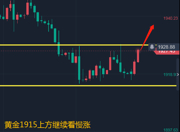 日线上布林带走平,而均线MA10的压制在1928附近,白盘如果可以上破并且站稳的话,晚间还有一涨。不破1928会震荡回落,而早间的上升已经上破周五凌晨的反抽高点1921,所以日内应该不会很弱,至少是一个震荡慢涨,所以我们思路依然保持低多,防守则是1915,不破1915坚定看涨,下破调整思路即可。下方支撑1922-23看涨,防守1915,看1932-1940.