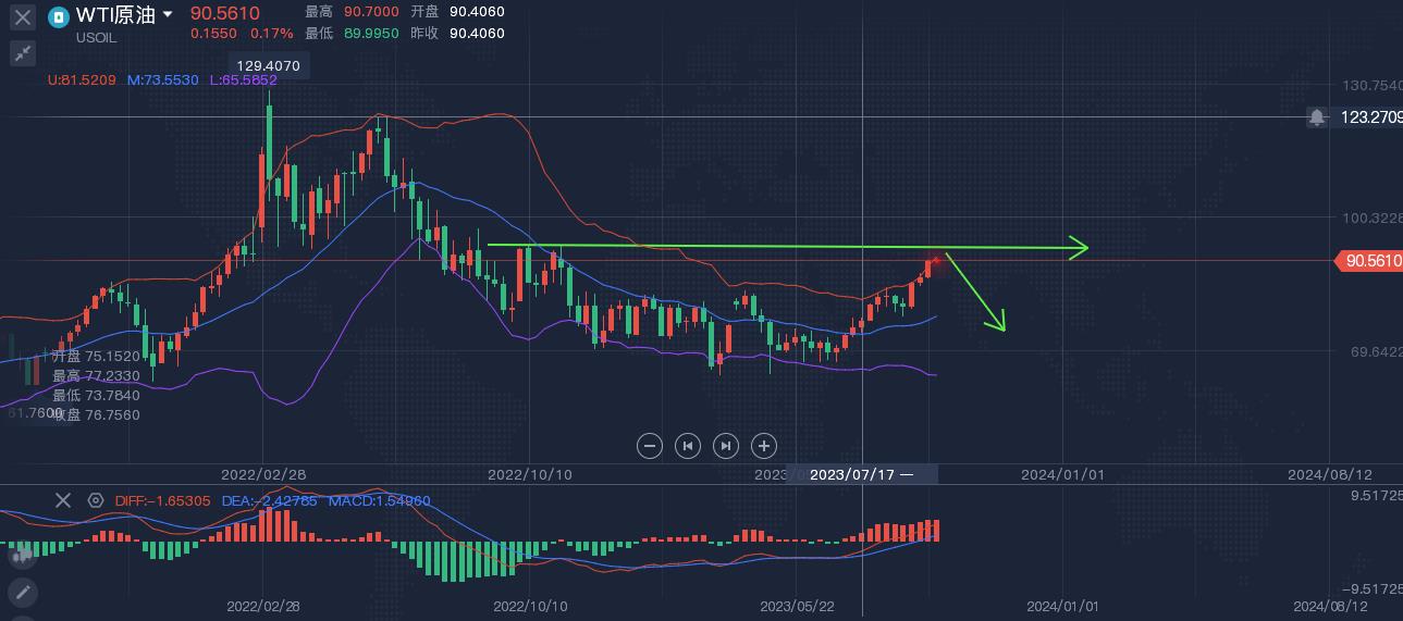原油方面、周五原油延续上升走强,但从上升幅度来看,从第一波67.4上升到84.2接近17美金幅度,第二波从77.5-93.7也接近17美金幅度,目前已经到多头非常尴尬的区域,看多不追多,同时93.7也是周线双顶 压制,触及可以中线空单博弈。