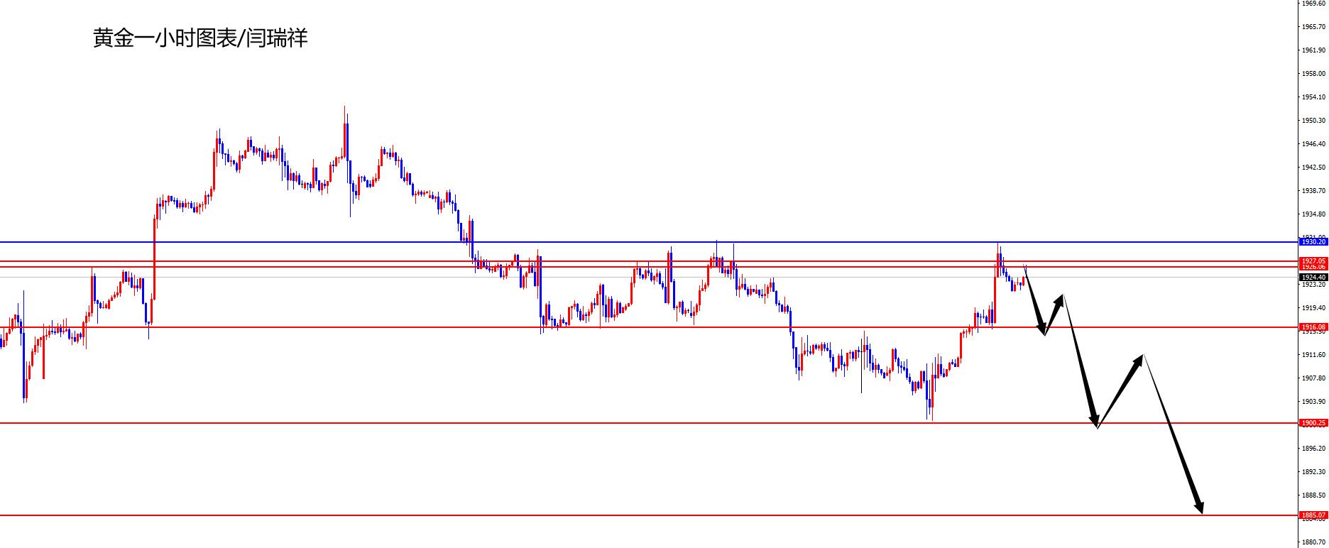黄金1929-30区间空,防守10美金,目标1916-1900-1885(激进者于1927区间先空)