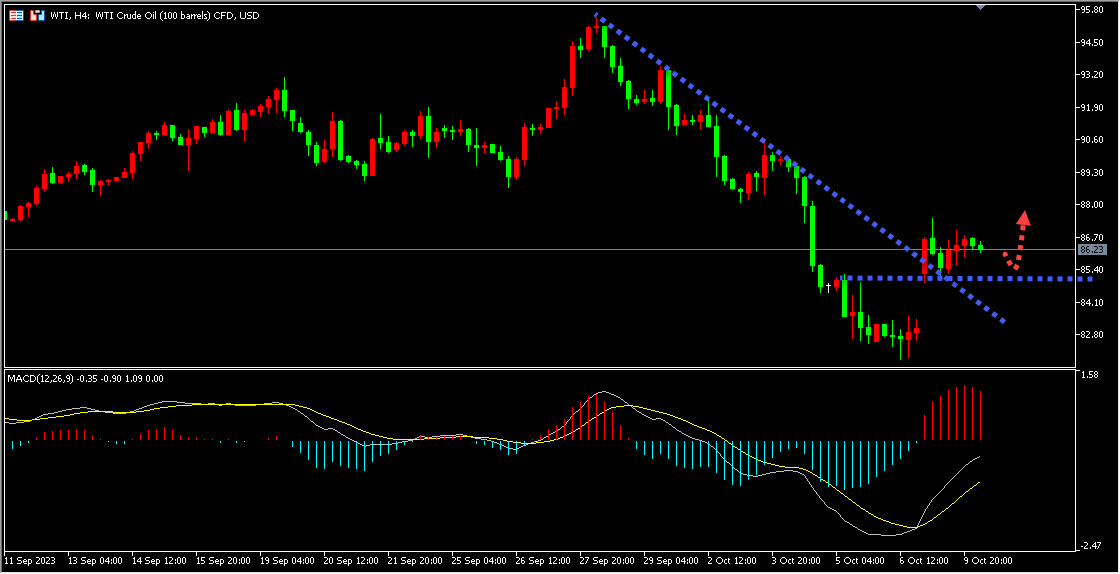 原油昨日高日跳空高开突破4小时下跌趋势线压力位,随后开始回踩下跌趋势线突破以后形成的支撑位于欧盘出现企稳信号,开始日内短线拉升,考虑到目前巴以冲突的不确定性,日内暂时关注原油下方支撑位,出现企稳后信号后在去做多原油,切莫直接追涨。