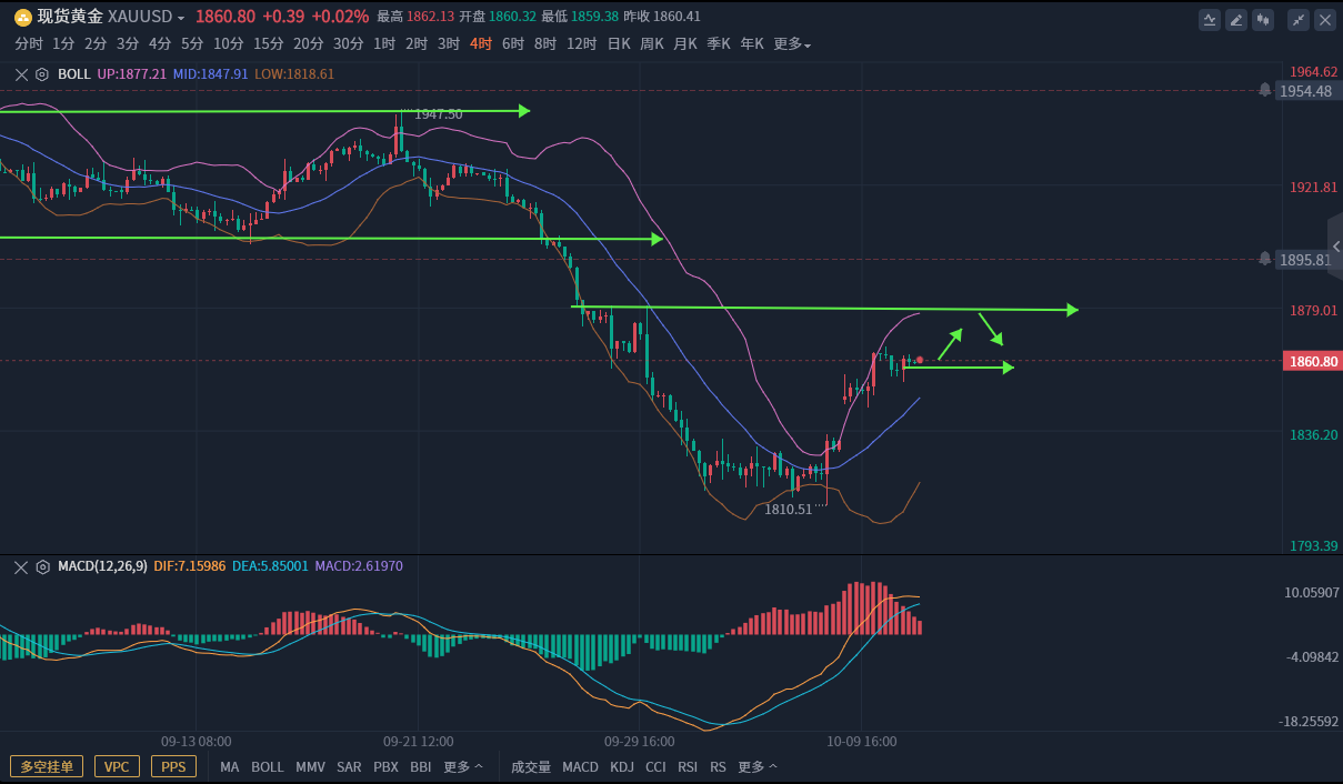黄金:1858附近多,损1852,目标1869-70。1879-80空,损1886,目标1870附近