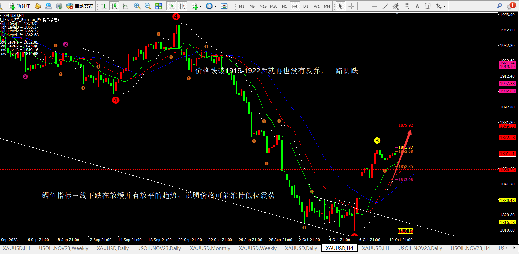 中线黄金1810-11多单稳健可在1880附近出局,守利润在1902-1910附近出局