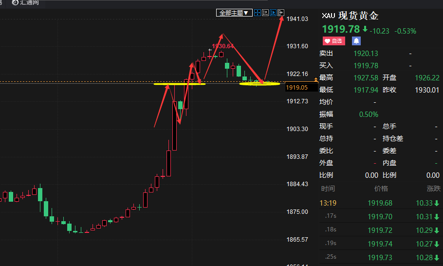 老马点金:16号黄金现价1919做多,目标1930
