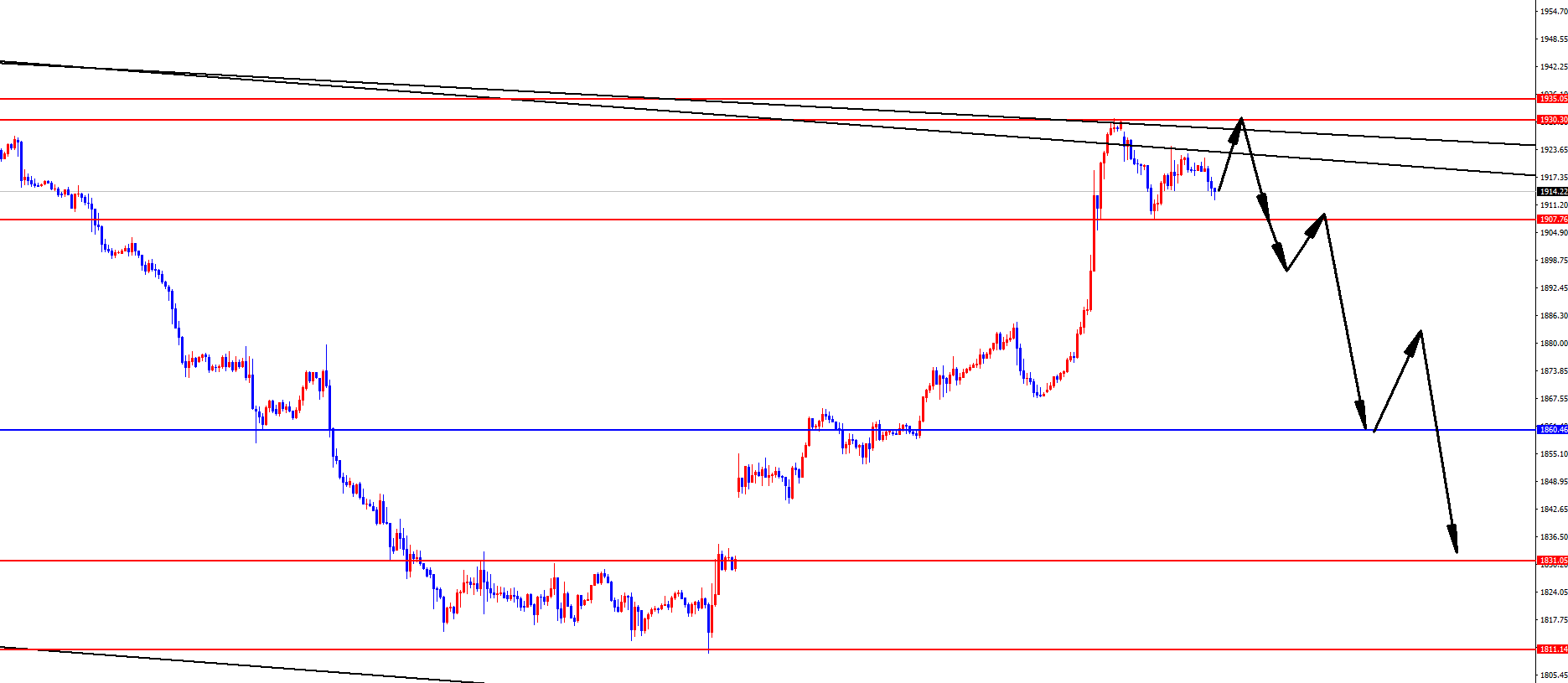 黄金1930-35区间中线空,防守1955,目标1860-1832-1810(破位看1750区域)