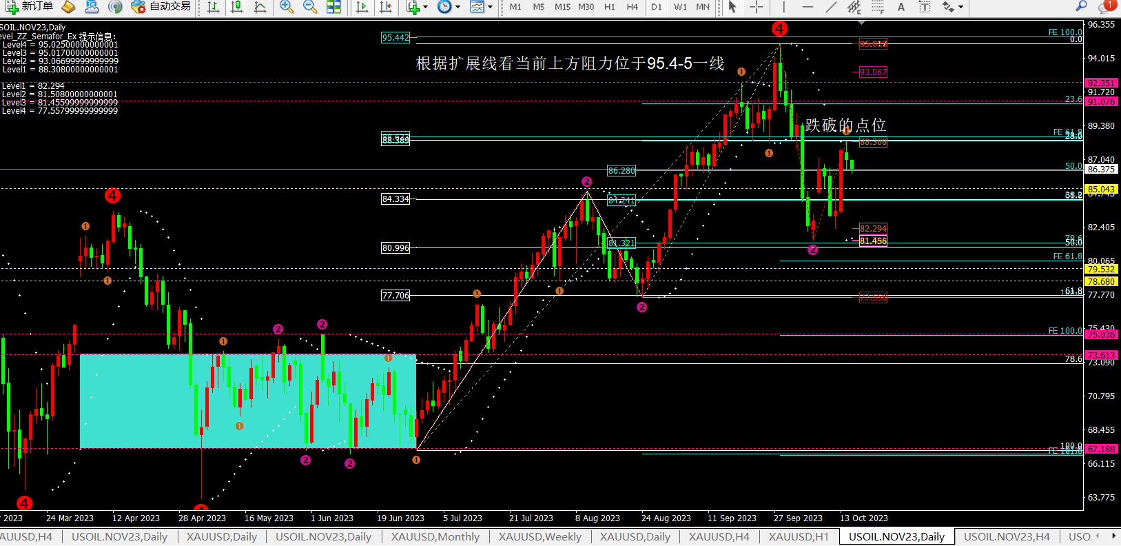 原油我们昨日基本是最高点的空单,87.8和88.3一线价格下跌至86.3一线,基本有20美金的利润。