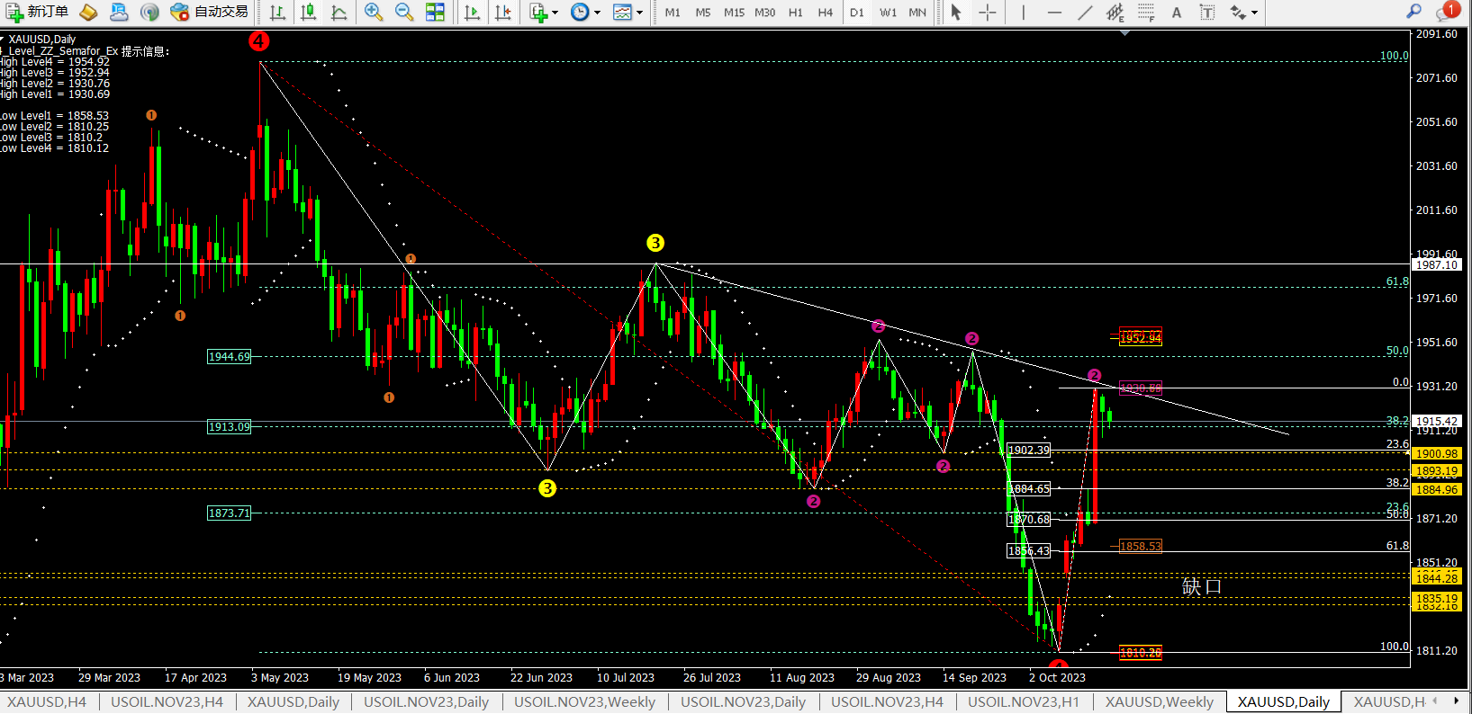 思路:亚盘价格维持在高位震荡,短期关注1908和1905附近的支撑,而短期上方压制先关注1924一线。