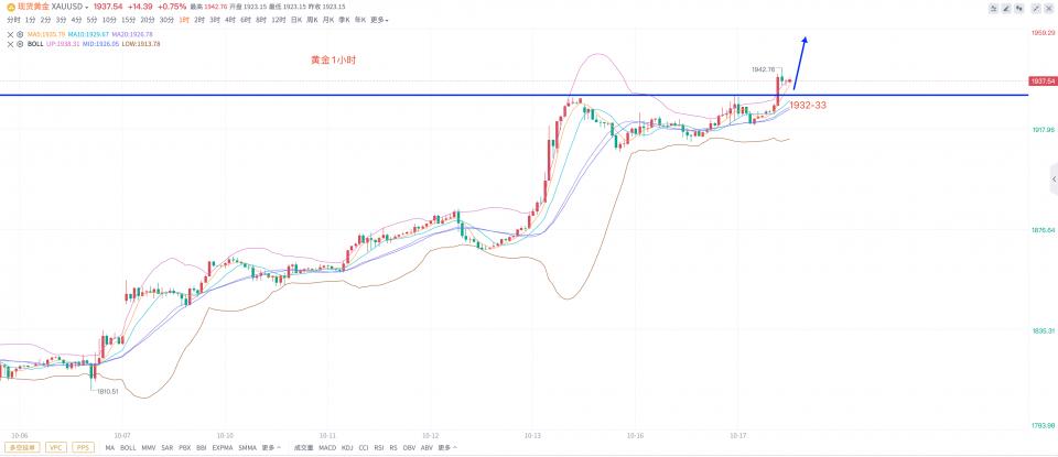 黄金,早间受凌晨4点30美国费城联储储备银行长哈克的偏鸽讲话,早上开盘从1923大幅拉升20美金,冲击1943美元高点,那上周五及最近两天形成的高点1932-1933的区域,就形成了新的支撑区域,这周以1906-08为支撑点,修正了两天的时间,早上突破后回踩1932-1933的区域多,除了1943外,下一步观注1948-50的范围。