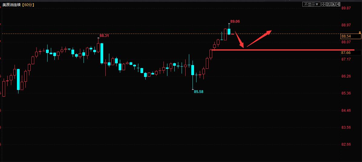 原油昨天我们给的85.6多单点位刚刚好,顺利在86.6获利了结。今天原油我们的思路还是看多,下方关注早间起涨点,原油87.6,首次给到可多,看88.6;