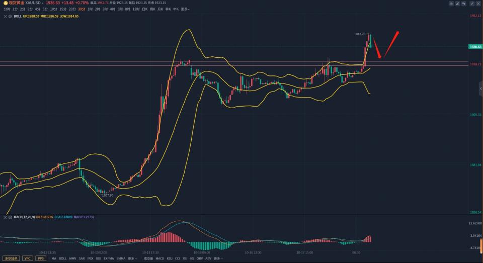 布林掘金:黄金强势破位上涨,1919多单完美收割