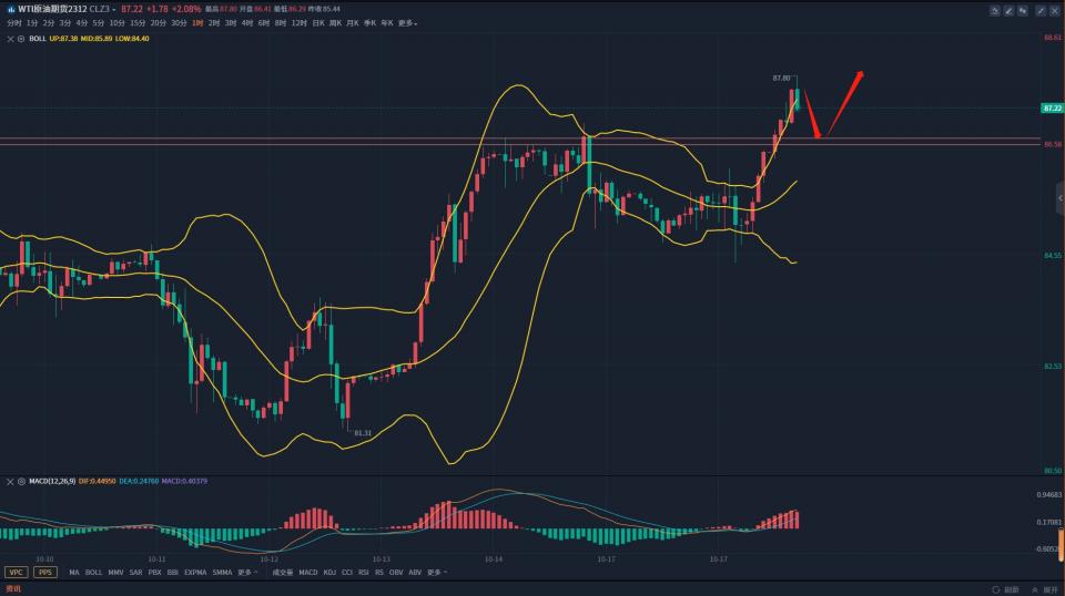 原油:回调86.5-86.7区域预期做空,止损86,目标88.7