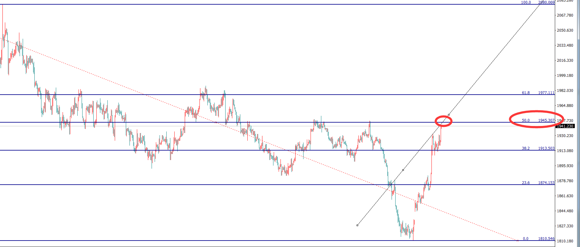 从技术上来说,上方1945一线是2080-1810的黄金分割位50%位置,将是日内关键压力位。如果无法突破1945,那么行情回落的可能性非常大!!!