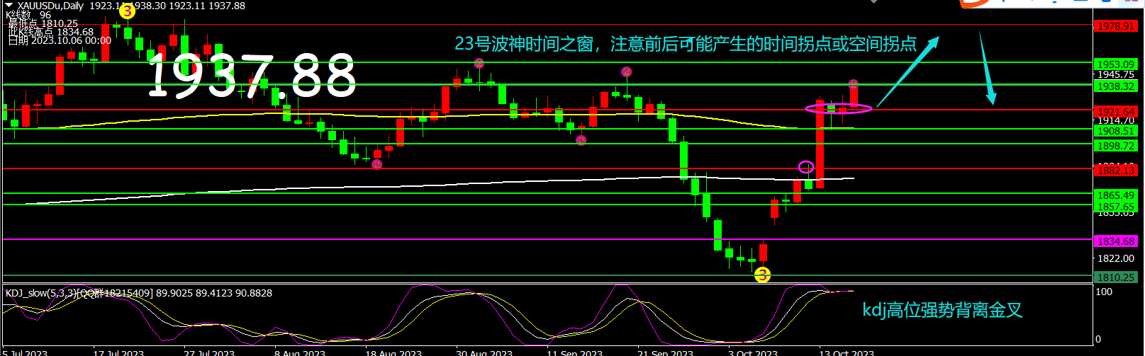 kdj:高位黄金强势背离,冲高出顶,今日转入死叉,二次顶出现短期