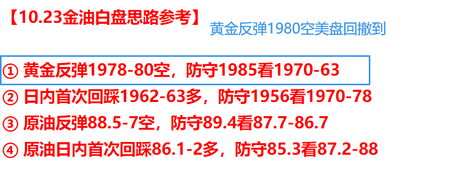 ① 黄金反弹1985-86空,防守1992看1976-70;欧盘后若金价一直未能站上1980,空单下移到1978-80去参与。