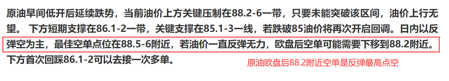 李弈善:黄金反弹继续空,原油85成关键支撑。