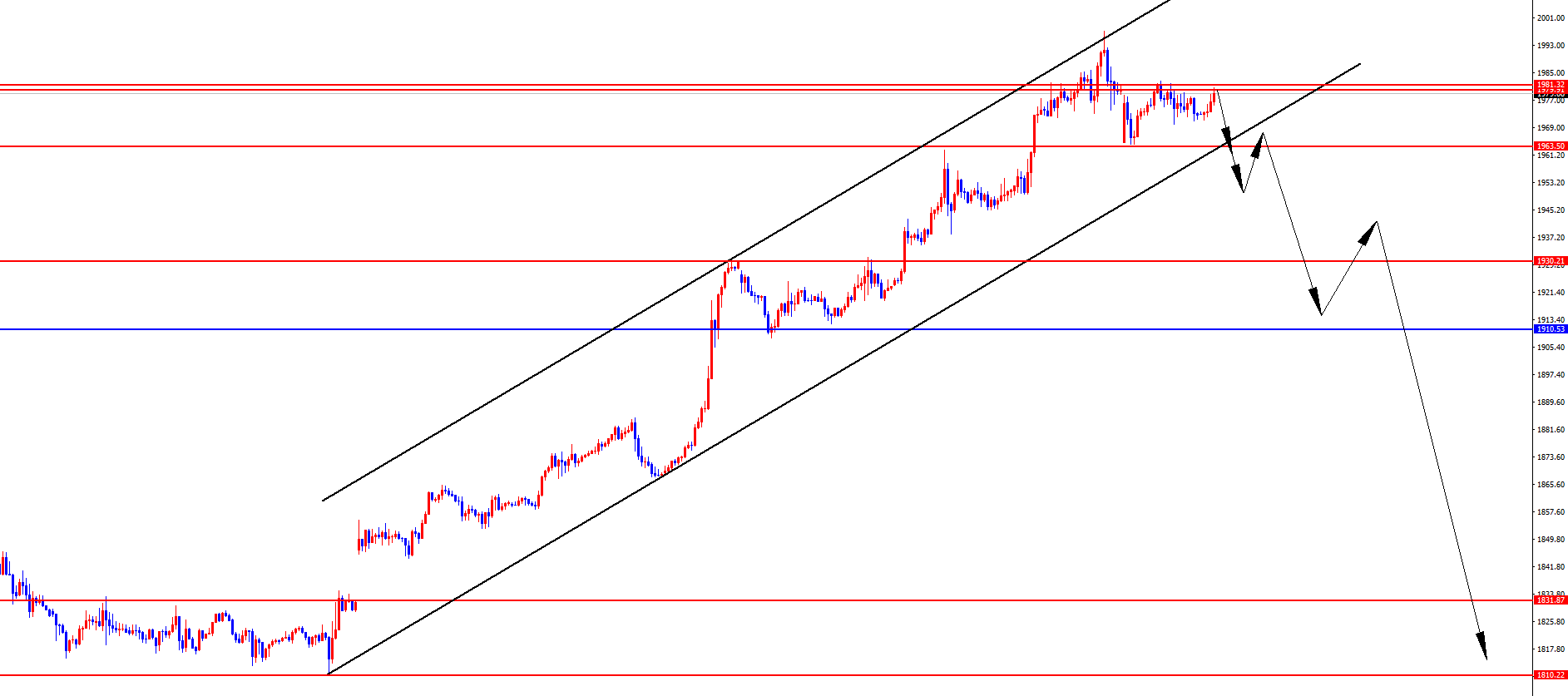 黄金1980-81区间中线空,防守2000,目标1960-1955(破位看1910-1880-1832区域)