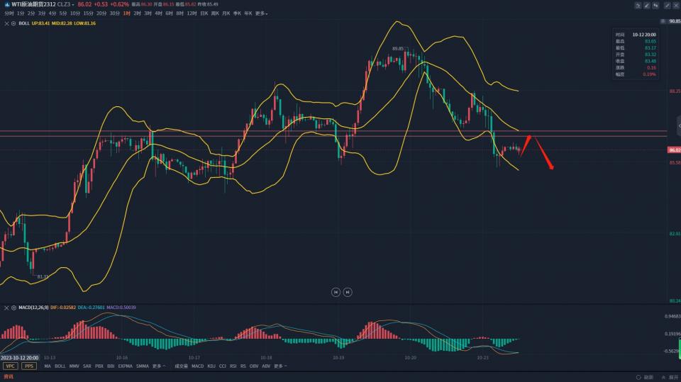 原油:反弹86.5-86.7区域做空,止损87,目标84.8-85