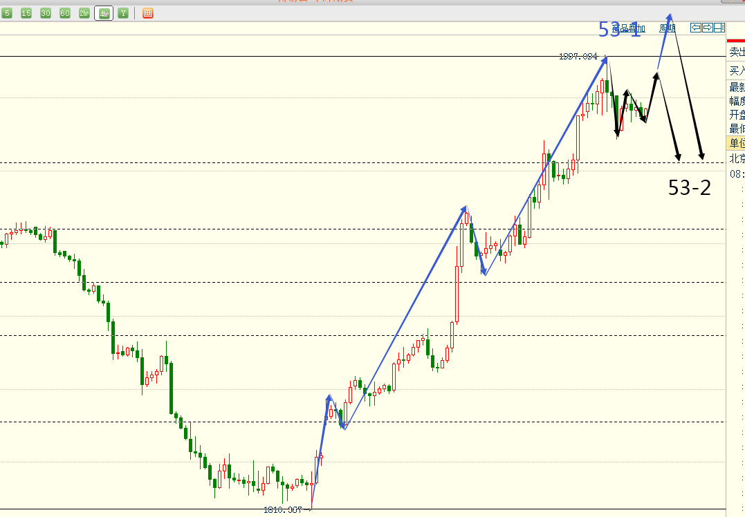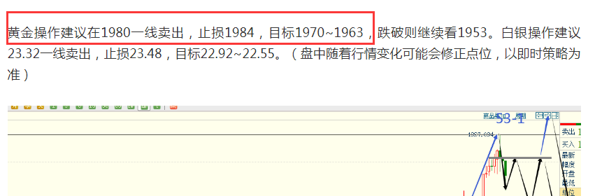 在黄金的调整阶段我们再次抓住了短线机会,昨日1980建议卖出短线收获10美金(如下图示)。由于前期拉升幅度较大,经过两天的调整之后,今日多头还会尝试自救收复失地。因此日内继续看区间内的震荡上行,不过在接近区间上沿时同样要考虑二次回落的出现。
