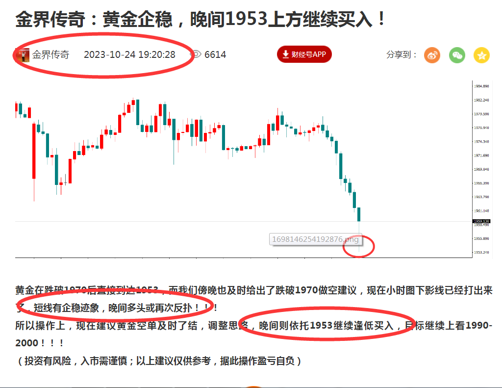 昨天欧盘后,我们及时给出了跌破1970做空黄金建议,晚间下探1953止跌后,又及时提示做多。随着后半夜多头如预期反扑,多单也是近20美金利润到手。