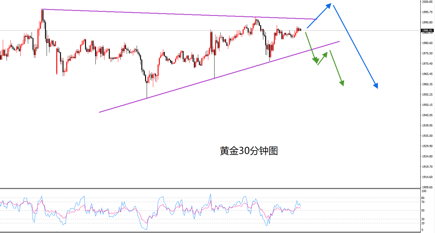 黄金周四继续维持震荡整理,高点上移至1993,而低点昨天在测试1972后迎来止跌。
