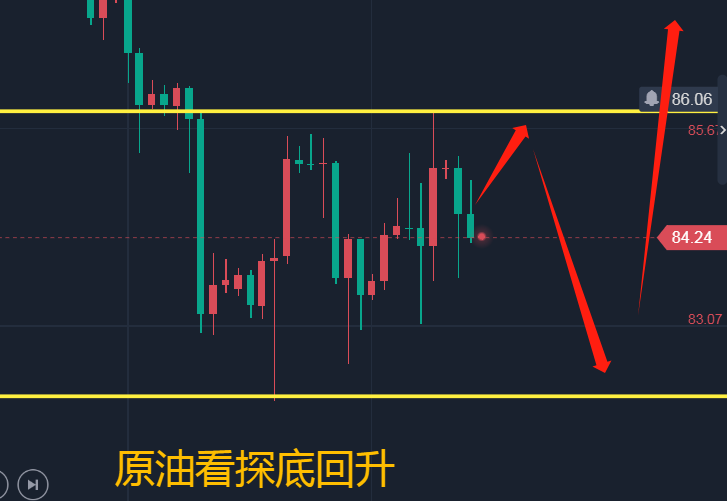 原油上周整体有点偏弱,在经过大跌之后出现一波三连阳,但上方的压力并没有突破,而周线上均线死叉,短线有望继续向中轨附近靠拢,所以说日内保持先空后多的思路对待,上方压力关注85.4去空一次,防守86.4.看84-83.下方支撑关注82.3附近再大胆去多来得及!