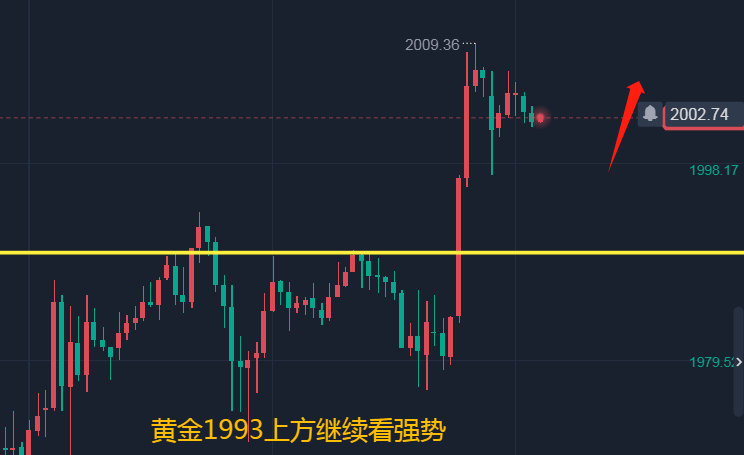 从技术面来说,周线上金价继续保持强势,均线金价多头排列,布林带开口,毋庸置疑很明显的多头走势;而日线上也是如出一辙,均线多头排列,只要不破日线MA10的位置单边的强势就会延续,下方的支撑关注顶底转换的位置1993-94附近,日内给到可以大胆去加仓多,首先就是1997附近先进场,防守1982,看2005-2010.本轮的多空分水岭就在1982,不破1982可以放心多,破位看震荡即可,所以说1982上方可以根据自己的仓位来分批进场看涨!