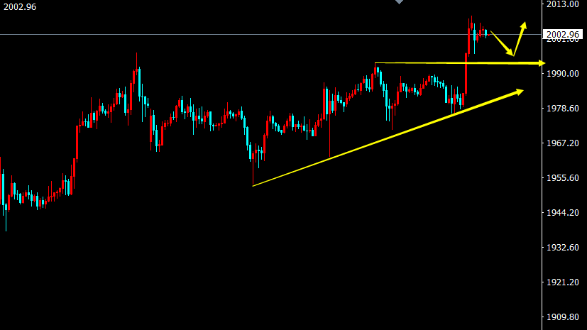 黄金,上周五多头再度发力,最高触及到09附近后止步,也再次突破了2000的大关,单日上升幅度达30美金左右,这也是继前期上升以来修复过后的最大涨幅,也先后突破了前期所形成的压制口,而此次突破也打碎了前期空头的回撤之路,而目前在多头的强势面前,我们还是需要维持于跟随市场的形态来进行操作,而下方的支撑也是前期的高点位置和日线回撤的低点95-93附近,此位置也很有可能是日内的回撤低点,也是近期内黄金继续上行的底部位置,既然突破了上方压力,则后期黄金的目标也将有可能继续继续上行,日线均线系统呈现多头排列,但下方的支撑有些松弛,则日内黄金我们还是先于04-05附近做空,目标看90-80附近,损10.5.
