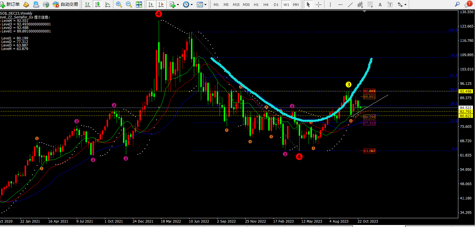 思路:今日最好的多单点位时83.5-7一线;本周最佳点位82.3-7附近,但是可能没有机会;而本周重点关注86-86.3能否站稳,站稳价格继续向上运行。