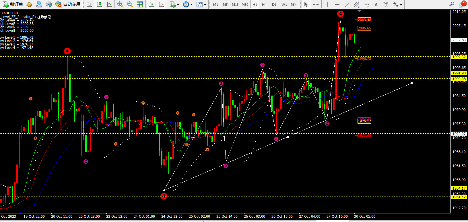 第五点:小时线短期维持在高位震荡,从周五小时线走势看:目前支撑在1990-93一线.