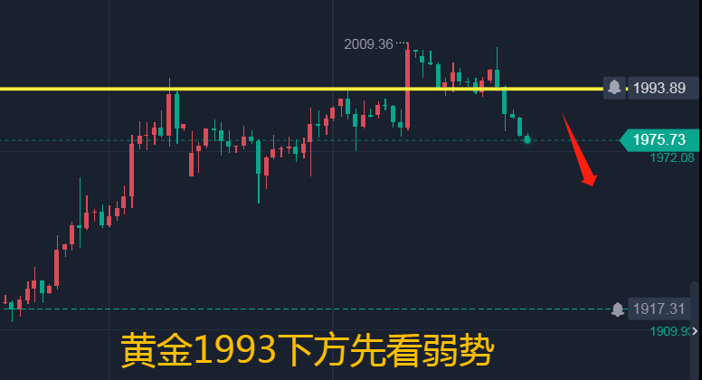 黄金昨天整体走势冲高回落,亚盘上涨,欧盘延续,所以美盘前的回撤就是诱多,我们白盘早间直接给出1993和1990的多单先行获利1998,随后晚间美盘回撤诱空的时候再次给出1994多单直接止盈2005.而金价并没有站稳走强,而是在试探2008的前高不破的情况下走出大幅的回调,随后跌破1985,正式宣告金价变为弱势,我们也是选择了观望,规避了风险。