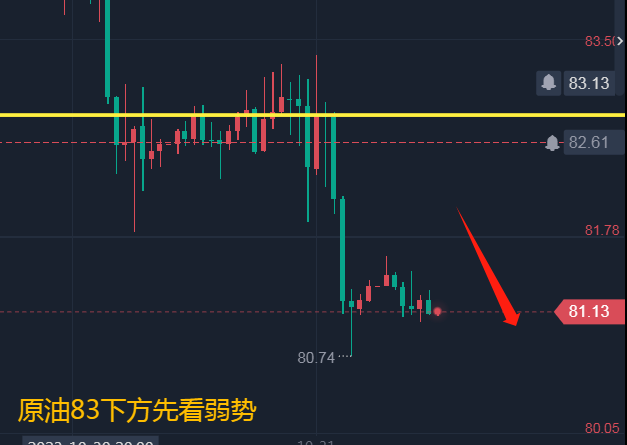 原油昨天整体走势很弱,预料到了空头,但反弹力度不够,导致做空没有进场,而做多也是因为时间关系取消了,当了一回观众。原油也是依然延续弱势,跌破之前的底部位置,那么反弹还将继续做空,目前日线已经是空头排列,而且周线的中轨有望下破,所以暂时先不多,压力方面关注82.1做空,给82.6加仓,防守83.1,看81-80!支撑反面看初次试探78.5附近选多一次!