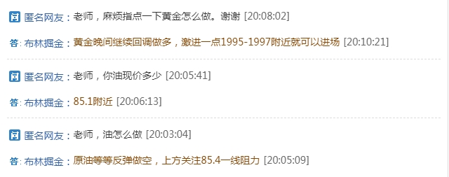黄金昨日冲高回落,价格在美盘时段回踩1995一线后,再度冲上2000美元上方,最高触及2008美元一线,昨晚路演给出的1995-1997区域多单顺利达到目标位置2005。原油价格同样的小幅反弹之后再度下行,看了路演的朋友都知道昨晚给了83.4附近空单,价格最高触及到83.37,有的朋友进场了,有的朋友可能没跟上,跟上的朋友恭喜了,黄金原油双双获利离场。