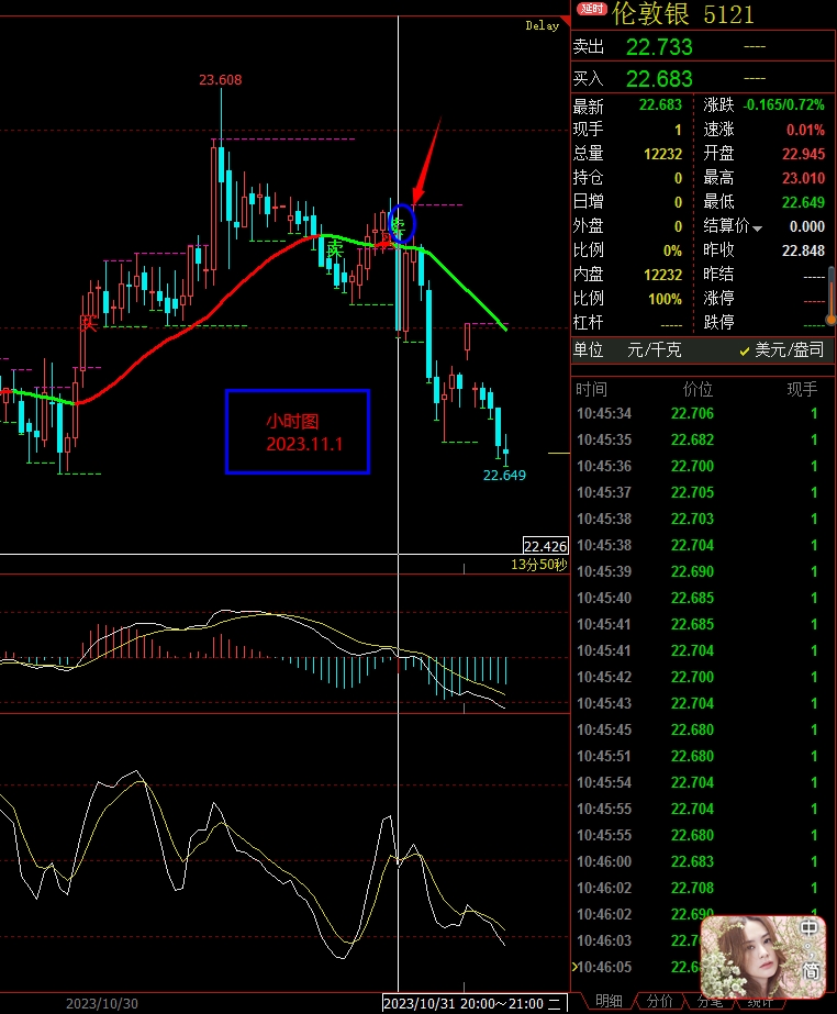 现货白银(伦敦银)、沪银:回调修正,根据我们指标显示超短线给出的卖出信号,关注区间在23-22.4一线,关注大区间在23.3-22.2一线。沪银继续回调修正,根据我们指标显示超短线仍给出的卖出信号,关注区间在5850-5730一线,大区间在6030-5590之间。