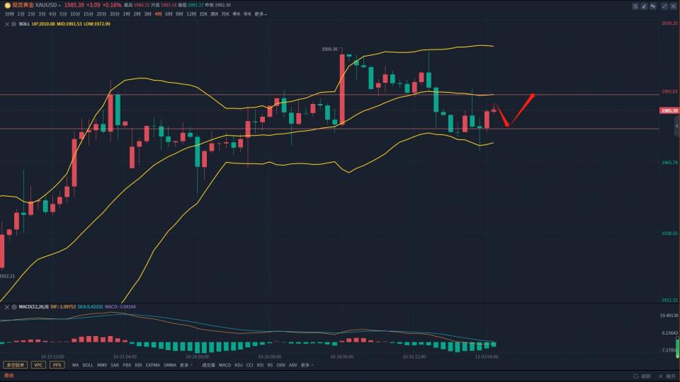 今日凌晨美联储如期公布了最新的利率决议政策,不出意外,维持当前利率不变,对黄金整体的影响并不是很大,黄金价格在数据公布后半小时小幅回撤,最低触及1970一线,也就是昨天文章中所说的稳健的多单进场点位,不过很快收复跌幅,说明下方支撑较为强劲,昨天早间路演给出的多单也是完美收割。原油昨晚给出的83.2-83.5这个位置的空单,跟上的朋友再度吃肉。