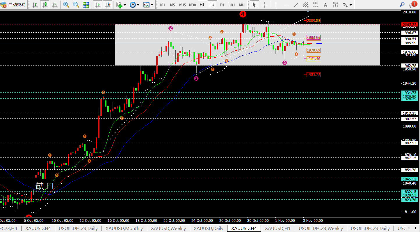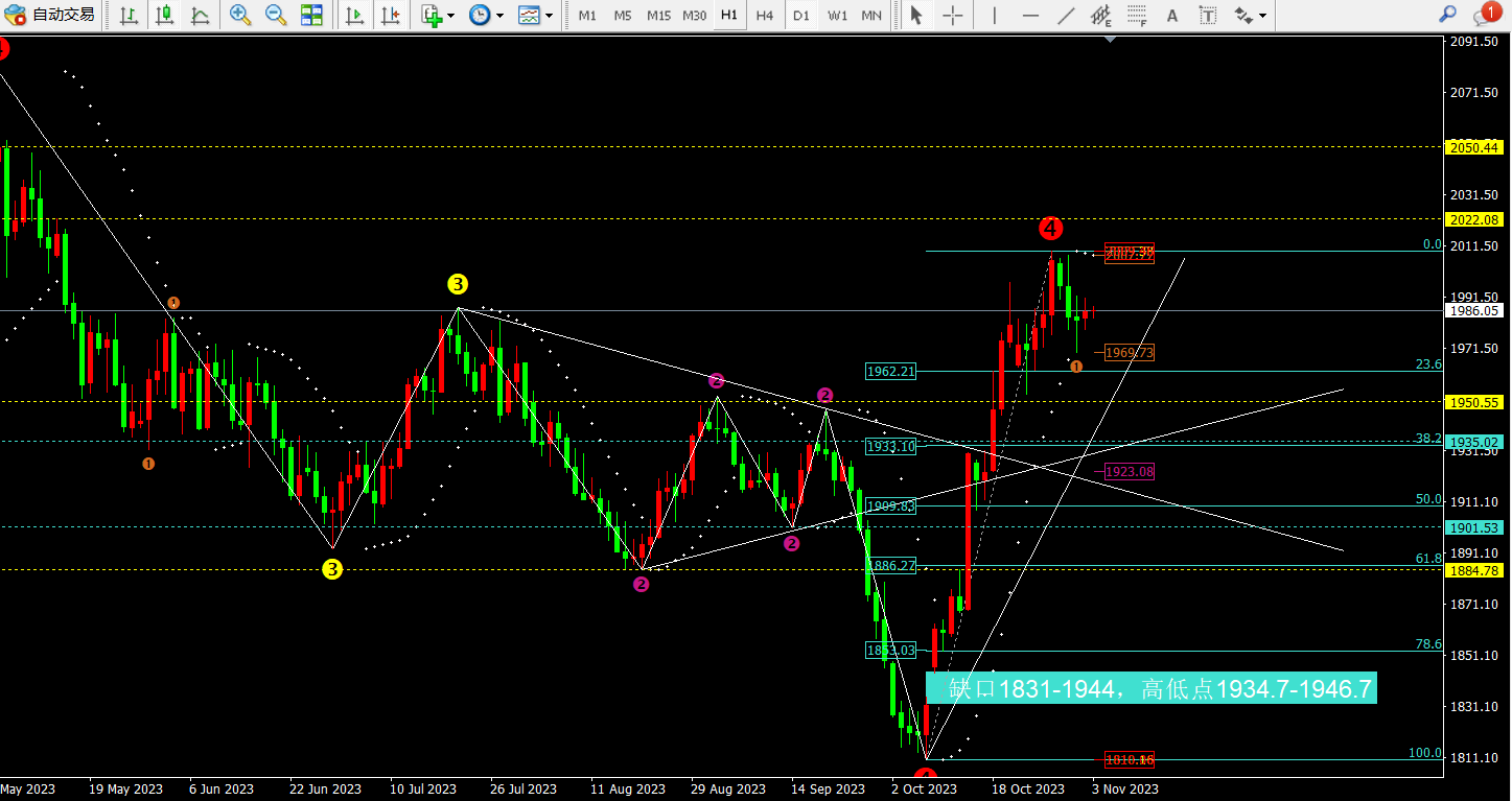 因为今日属于非农日,一般情况下白盘都会比较清淡,也就是今日白盘大概率维持1990-1980区间震荡,美盘才会爆发行情。