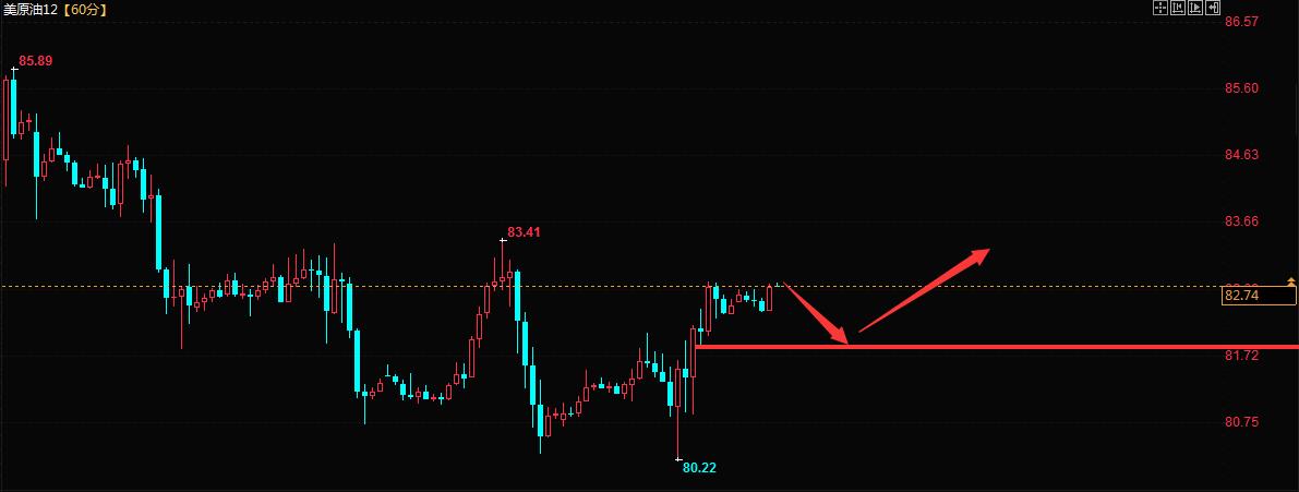 原油周四整个亚盘欧盘延续反弹,美盘后走了探底回升,截止到凌晨,日线收盘小阳形态,白天观望为主,等出方向。