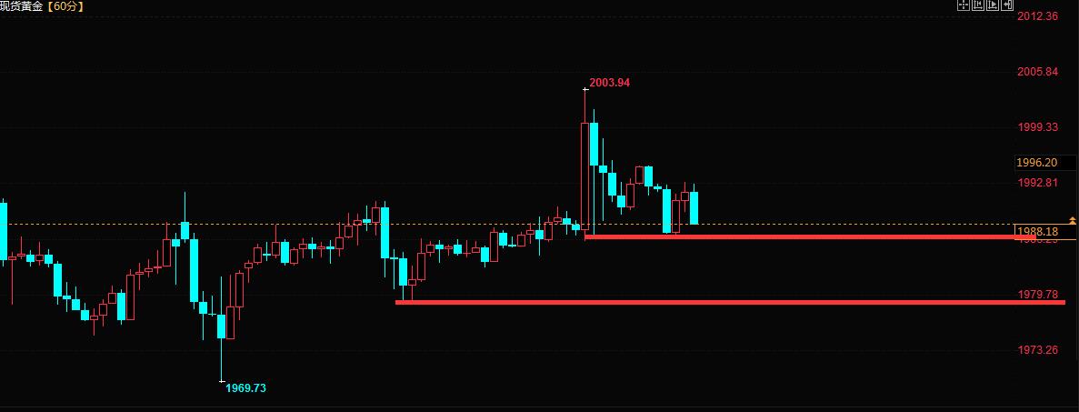 大家上午好,上周五非农就业数据利多导致黄金从1983一跌狂飙至2004附近,而21点后金价走了一波较大的回撤,又从2004跌到1986,瞬间跌了近18美金,截止到收盘,黄金并没有再次走强站上2000上方,而周五我们在1991一线做多,然后在1998获利7美元。22点后再次1989做多在1992获利了结。非农完美结束。