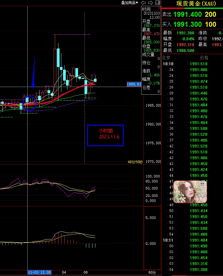 技术面上来看上周五日线收了一根小阳柱,布林带缩口,KDJ指标死叉放量欲拐角形成金叉,目前来看大趋势依旧偏弱,中线维持阶段的性上行模式。4小时图图中来看布林带开始开口,KDJ指标形成死叉。小时图图中来看布林带开口,KDJ指标形成金叉,上周五价格在非农影响下冲高回落,今日仍维持上行为主的走势,关注2000关口能否成功上破并站稳,根据我们的指标显示趋势波段给出的买入信号,下方支撑关注1989/1979/1969一线,上方压力关注2009/2018/2030一线.