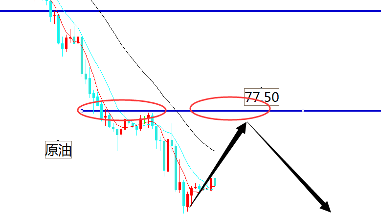 原油疯狂吧,不管是涨还是跌都会给大家惊喜,之前天天涨,最近的原油是天天跌,让那些喜欢抗单交易的交易者苦逼到怀疑人生,这个就是市场,我们要敬畏它,原油坚持看跌,虽然已经到了大支撑,但是还是不考虑任何多,而是继续找空的机会,原油下面空间无限大。77.50已经是新的强压力了,今天依托它看跌。