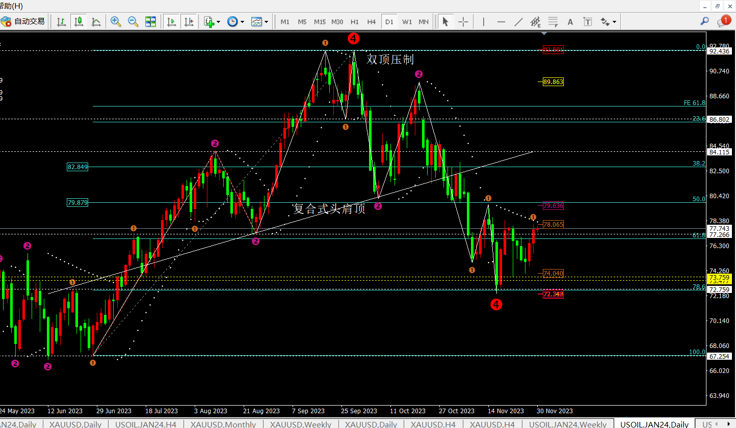 恭喜原油昨日75.7多单上涨至78一线,收获23美金!并中线持有中!