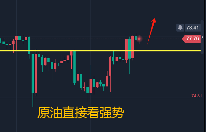 原油昨天整体走势过山车,先是冲高上破77随后走探底回升,力度还是很大,我们给出的第一波多单77被止损;随后探底反弹起来给出76.6和76.1的多单盈利77.5!整体上在上破77后看涨思路是对的,只不过行情来了一波扫盘。日内继续看涨,H4方面开始出现单边强势格局,所以现价77.6直接看涨,给77.1加仓,防守76.6,看78.5-79.