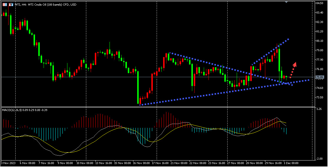 原油价格在周四下跌超过2%,这是因为OPEC+成员国达成了减产协议,但该协议未能达到市场的预期。尽管国际油价在盘中早些时候一度上涨超过2%,甚至接近80美元关口,但投资者对减产协议的内容感到困惑,导致油价最终承压下跌。目前原油接近4小时共振的支撑区域,今日关注下方4小时区域支撑位,出现企稳信号后做多原油。