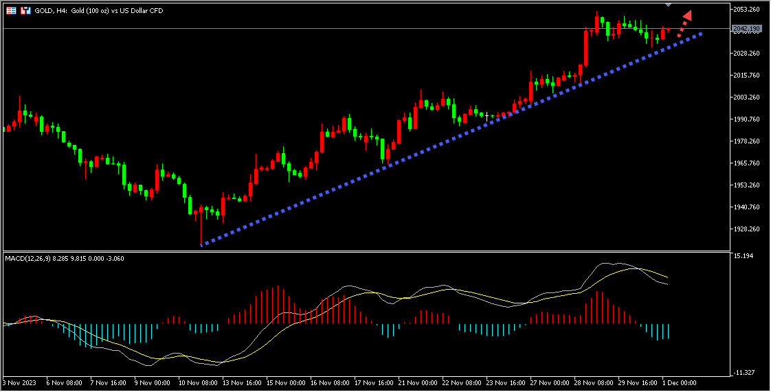 根据最新发布的数据显示,美国10月份消费者支出温和增长,但增速较之前有所放缓,这可能进一步强化了市场对美联储加息已经结束的预期。这一消息对黄金市场带来了积极的影响。消费者支出是美国经济增长的重要组成部分,因此其表现对市场产生重要影响。10月份个人消费支出指数同比增长3%,低于前一个月的3.4%。核心个人消费支出指数增长3.5%,较上月的3.7%略低。这表明消费者对商品和服务的需求正在降温,可能反映了利率上升和低收入家庭储蓄耗尽的影响。尽管工资水平仍然较高,但劳动力市场的放缓使得工资增长的速度有所放缓。在此背景下,市场对美联储可能不再加息的预期加大,这对黄金市场产生了积极的影响。黄金作为一种避险资产,通常在市场预期利率上升放缓或停止加息时表现良好。此外,投资者也将目光投向核心个人消费支出指数,作为美联储主席鲍威尔最常提到的通胀指标,以判断通胀压力和货币政策走向。此外,经济学家对第四季度的经济增长预期普遍低于2%。由于担心经济可能在2024年初陷入衰退,大多数人预计经济将进入一段非常缓慢的增长期,以避免一场全面的衰退。这种对经济增长的担忧也增加了投资者对黄金的兴趣。黄金在经济增长乏力时通常是一种避险选择,因为它被视为一种保值资产,有助于抵御市场不确定性和通胀风险。当前的市场环境对黄金是有利的。需求降温的迹象可能进一步强化了对美联储加息已经结束的预期,这对黄金构成了支撑。此外,对经济增长的担忧也增加了黄金的吸引力。