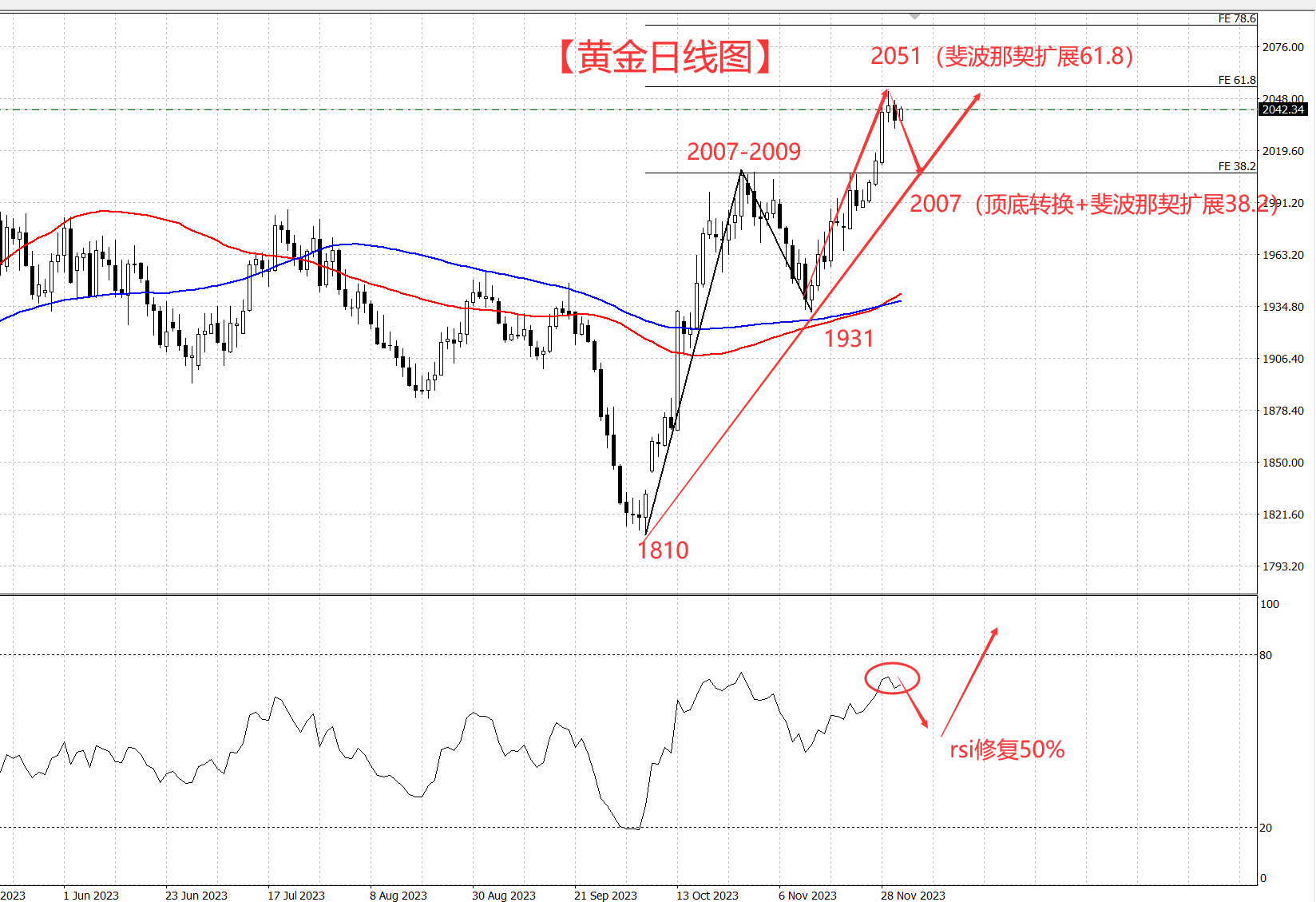 今天的交易先按短线来做,12月份的前半个月看回调2007,然后做中期多,后半个月直接看黄金刷新历史高点。