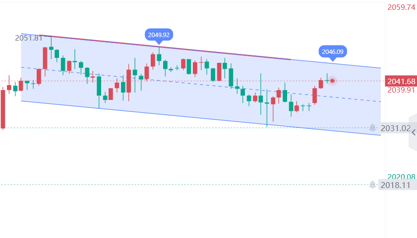 黄金本周在2051之后虽然有反弹,但反弹的力度一次比一次弱,昨天的高点在2049.9附近,美盘的下跌力度加深,金价几度跌破2035去到了2031附近,虽然收盘在2035附近,但是目前的下跌通道有雏形。今日上方关注2046的压制,只要此位置无法突破,那么后市将会保持高空的操作下去。下方通道如图在2030附近,切还有一个2018多空分水岭需要关注。总体来讲,今日操作保持2030-2046区间高空低多操作,早盘可以在2042先短空看2030支撑,损放2047即可。